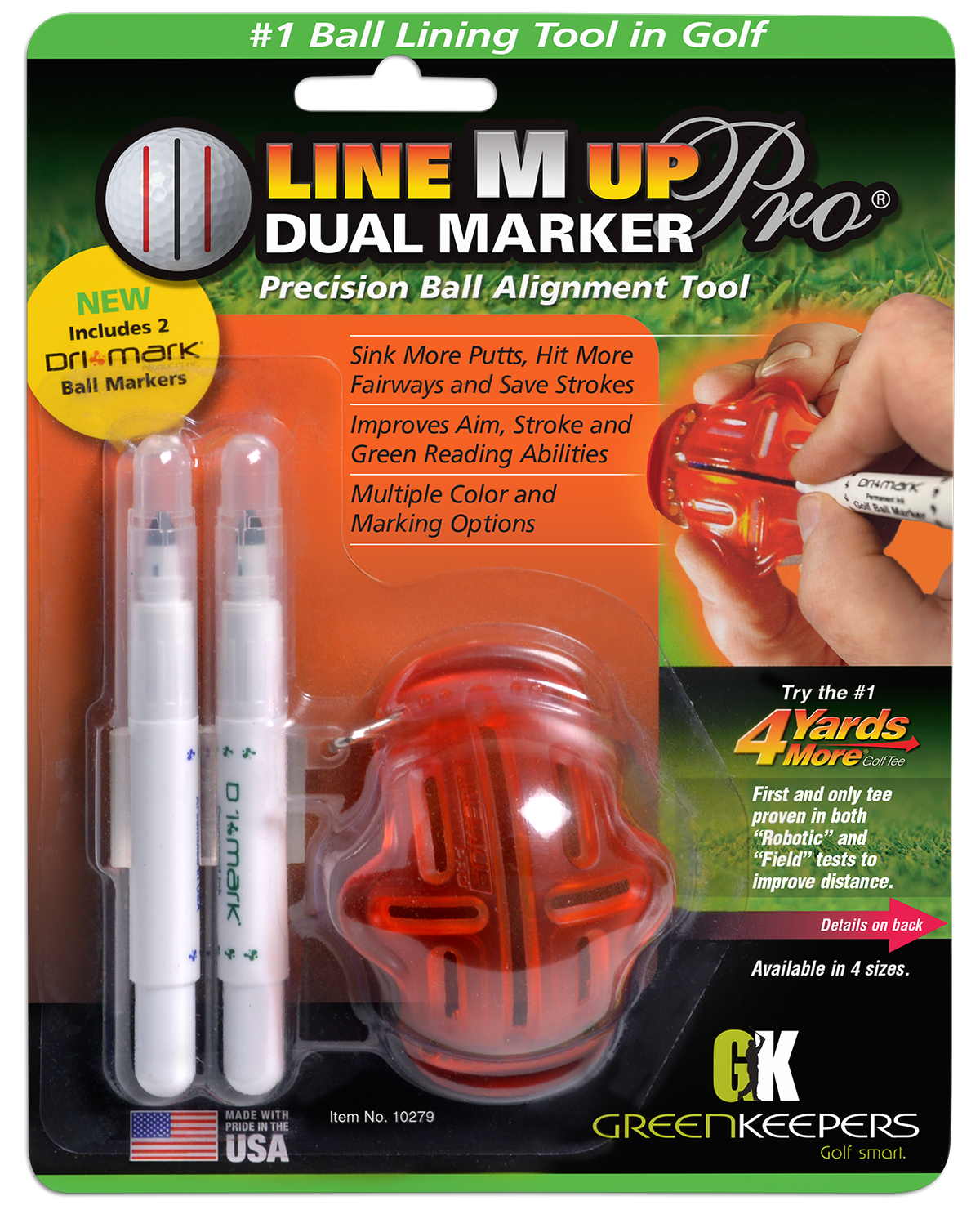 The Line-M-Up Pro Dual Marker gives you a visual guide when putting. When a good stroke is made, the line on the ball appears straight as it rolls.  When poorly struck, the line will appear to wobble. When a Pure Stroke (no wobble) with the proper speed misses the hole, you can identify a missed read to improve your green reading skills.